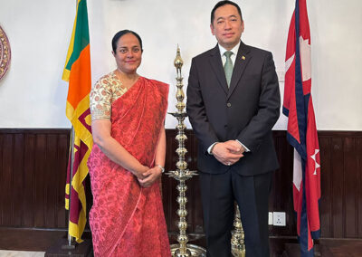 နီပေါနိုင်ငံဆိုင်ရာ မြန်မာသံအမတ်ကြီး ဦးသန့်စင်သည် ၂၀၂၆ ခုနှစ်၊ ဇန်နဝါရီလ ၆ ရက်နေ့ နံနက် ၁၁၀၀ နာရီအချိန်တွင် နီပေါနိုင်ငံဆိုင်ရာ သီရိလင်္ကာနိုင်ငံသံအမတ်ကြီး H.E. Mrs. Ruwanthi Delpitiya အား ကတ္တမန္ဒူးမြို့ရှိ သီရိလင်္ကာသံရုံး၌ သွားရောက်တွေ့ဆုံခဲ့ပါသည်။