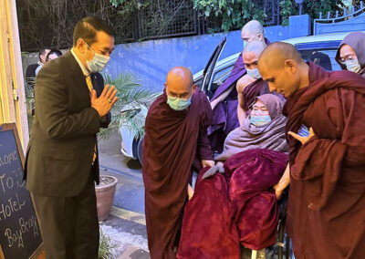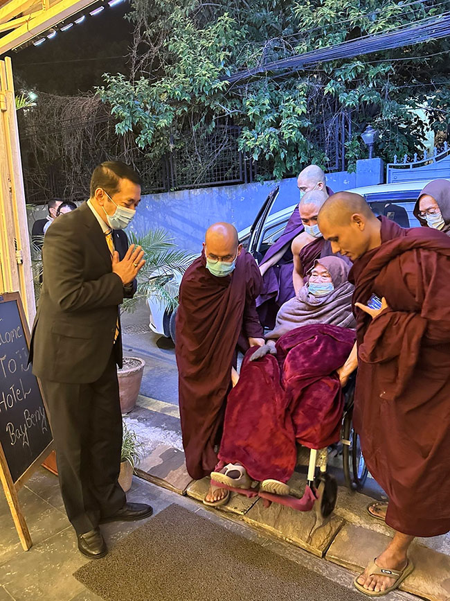 နီပေါနိုင်ငံဆိုင်ရာ မြန်မာသံအမတ်ကြီး ဦးသန့်စင်သည် ၂၀၂၅ ခုနှစ်၊ နိုဝင်ဘာလ ၂၆ ရက်နေ့ ညနေ ၁၈၀၀ နာရီအချိန်တွင် ကတ္တမန္ဒူးမြို့သို့ ခေတ္တ ကြွရောက်လာသည့် ဖားအောက်တောရ ဆရာတော် ဘန္ဒန္တ အာစိဏ္ဏအား ခေတ္တသီတင်းသုံးရာ ဟိုတယ်သို့ သွားရောက်ဖူးမြော်၍ လှူဖွယ်ဝတ္တု ဆက်ကပ်ခဲ့ပါသည်။