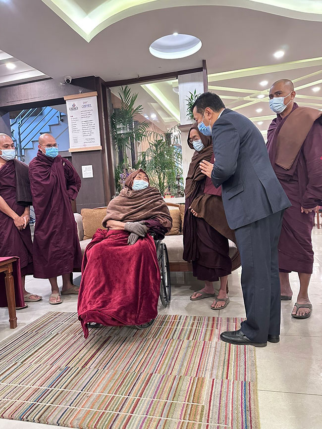 Ambassador U Thant Sin pays homage to Venerable Pa Auk Sayadaw in Kathmandu