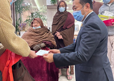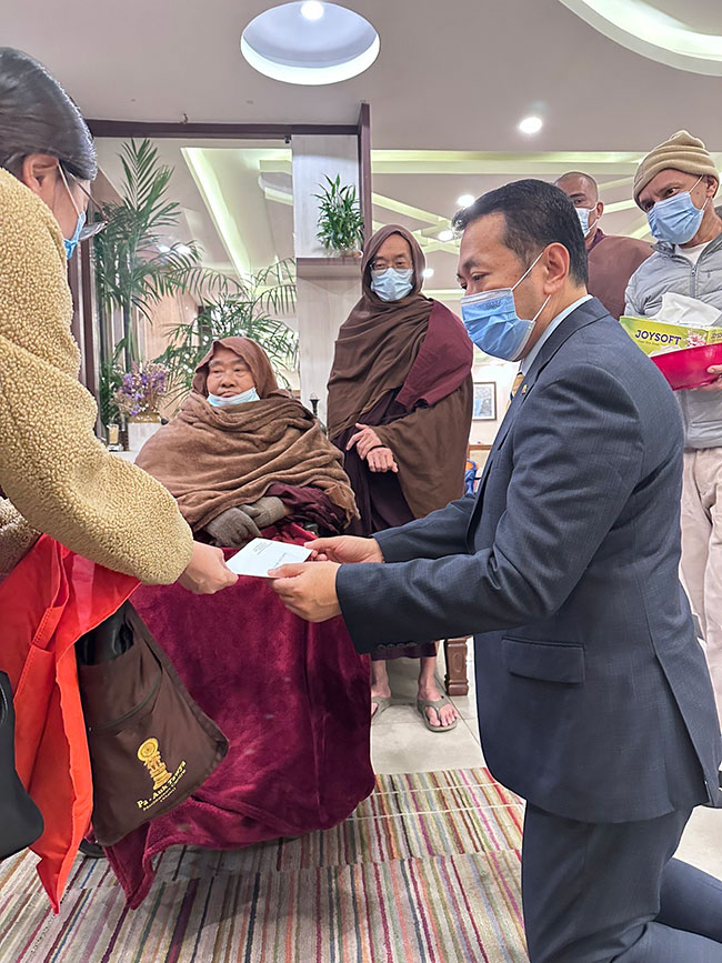 H.E. U Thant Sin, Ambassador Extraordinary and Plenipotentiary of the Republic of the Union of Myanmar paid homage to Venerable Pa Auk Sayadaw Bhaddanta Acinna in Kathmandu during his brief stay. The Ambassador respectfully made a monetary offering during the time of paying homage.