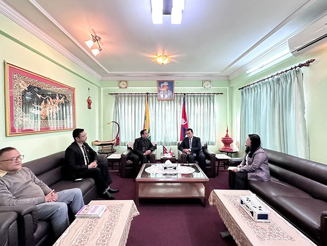 နီပေါနိုင်ငံဆိုင်ရာ မြန်မာသံအမတ်ကြီး ဦးသန့်စင်သည် ၂၀၂၅ ခုနှစ်၊ နိုဝင်ဘာလ ၂၇ ရက်နေ့ မွန်းလွဲ ၁၄၃၀ နာရီအချိန်တွင် Mediciti အထူးကုဆေးရုံ၏ အမှုဆောင်အရာရှိချုပ် Dr. Amit Tomar နှင့် အုပ်ချုပ်မှုဘုတ်အဖွဲ့ဝင်များအား သံရုံးဧည့်ခန်းမ၌ လက်ခံတွေ့ဆုံခဲ့ပါသည်။