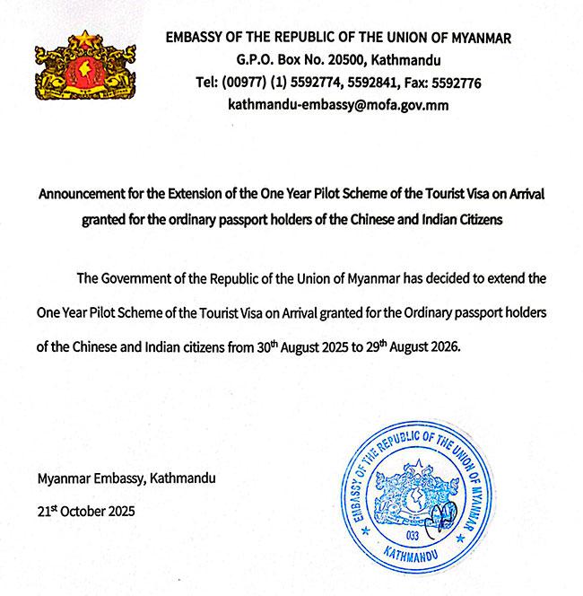 Announcement for the Extension of the One Year Pilot Scheme of the Tourist Visa on Arrival granted for the ordinary passport holders of the Chinese and Indian Citizens